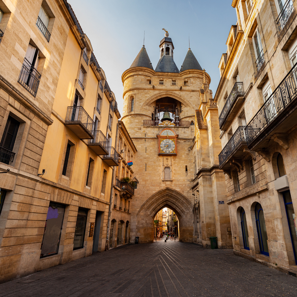 A must-see starting point is the Grosse Cloche (Great Bell), one of Bordeaux’s most iconic medieval landmarks. This 15th-century belfry, with its fairytale towers and arched gateway, once formed part of the city’s defensive walls and today remains a striking symbol of Bordeaux’s past.